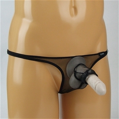 メンズ キラキラスケスケ生地ゾウさんイボイボリング付きTバック (ブラック)