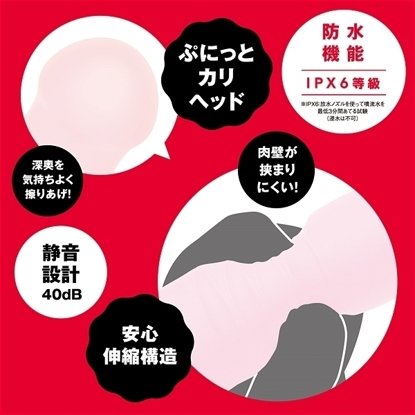 肉壁を挟み込む心配がない柔らかピストンギミックです。