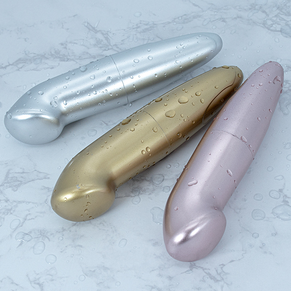 乳首やクリを刺激しやすいヘッド形状♪もちろん膣内に入れてもちょうど良いスポットを捉えてくれるので、いろいろとマルチに活躍するローターです♪こちらはシルバーのシャンパン系カラーとなっております。