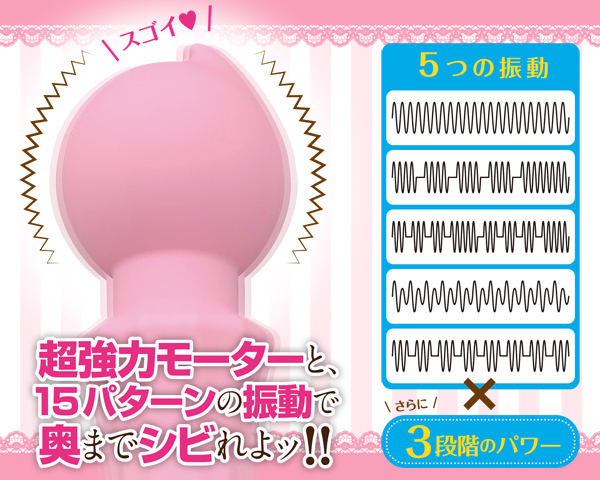 素材には柔らかなシリコンを採用、振動は5種類のパターンと3段階強弱を搭載!超強力モーターが生み出す快感を貴方も体験しよう♪完全防水、2.5時間充電で2時間連続稼働